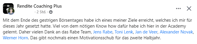 Profitiere von der jahrelangen Erfahrung und dem soliden „Track Record“ der Rabe Academy.